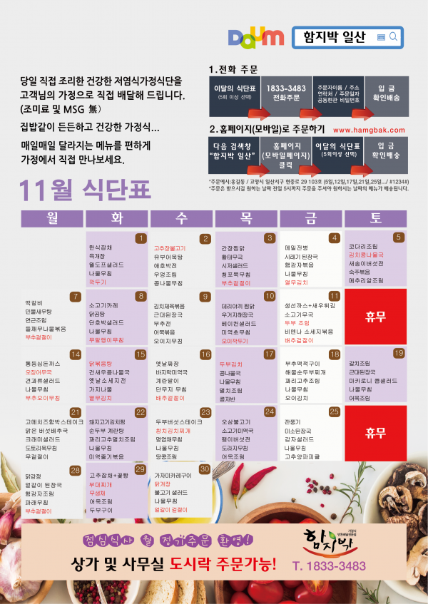 함지박 일산점, 일산 반찬, 반찬가게, 가정식, 반찬배달전문점