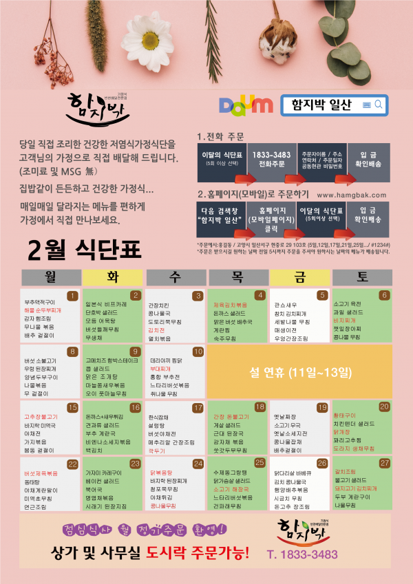 2월달 식단표입니다.
