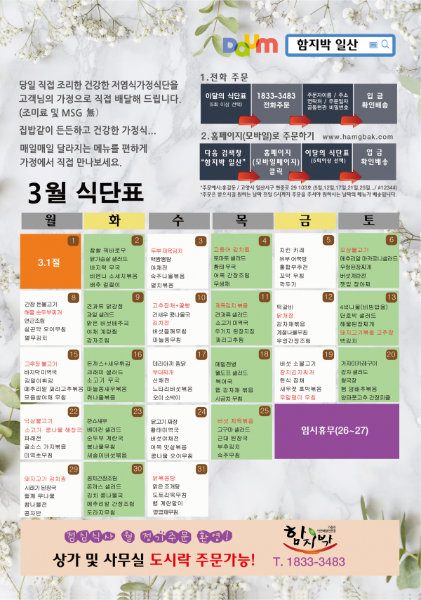함지박 일산점, 일산 반찬, 반찬가게, 가정식, 반찬배달전문점